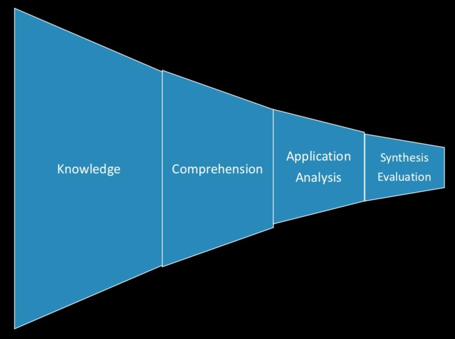 In summary, we like to think of the whole process as being a ‘continuum’, where Bloom’s Taxonomy is inverted and the learning process moves from left to right over time. All elements are important, but the sizes of each indicates both proportions of teaching time that’s needed and the order of learning sequences.