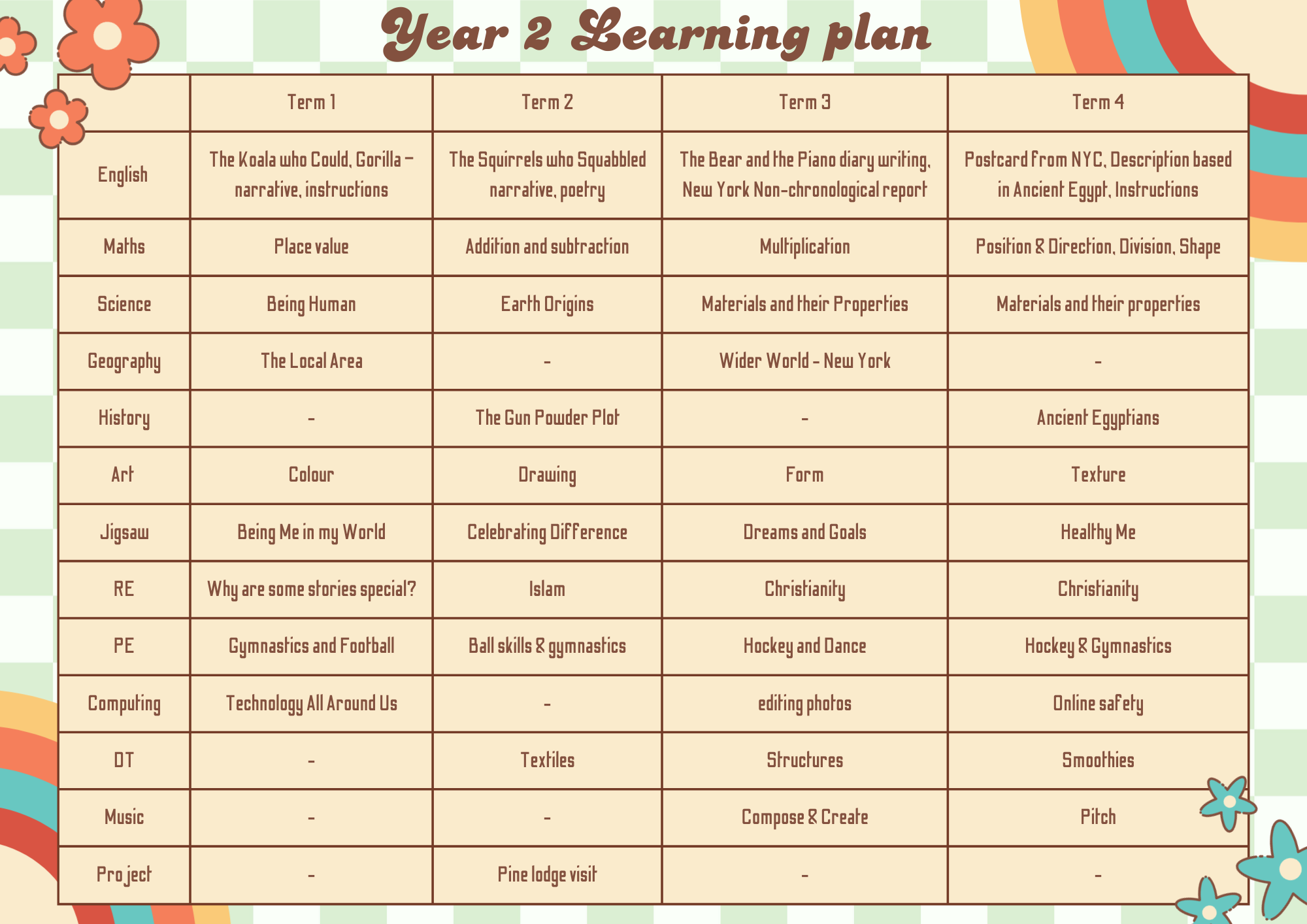Year 2 Learning Plan
